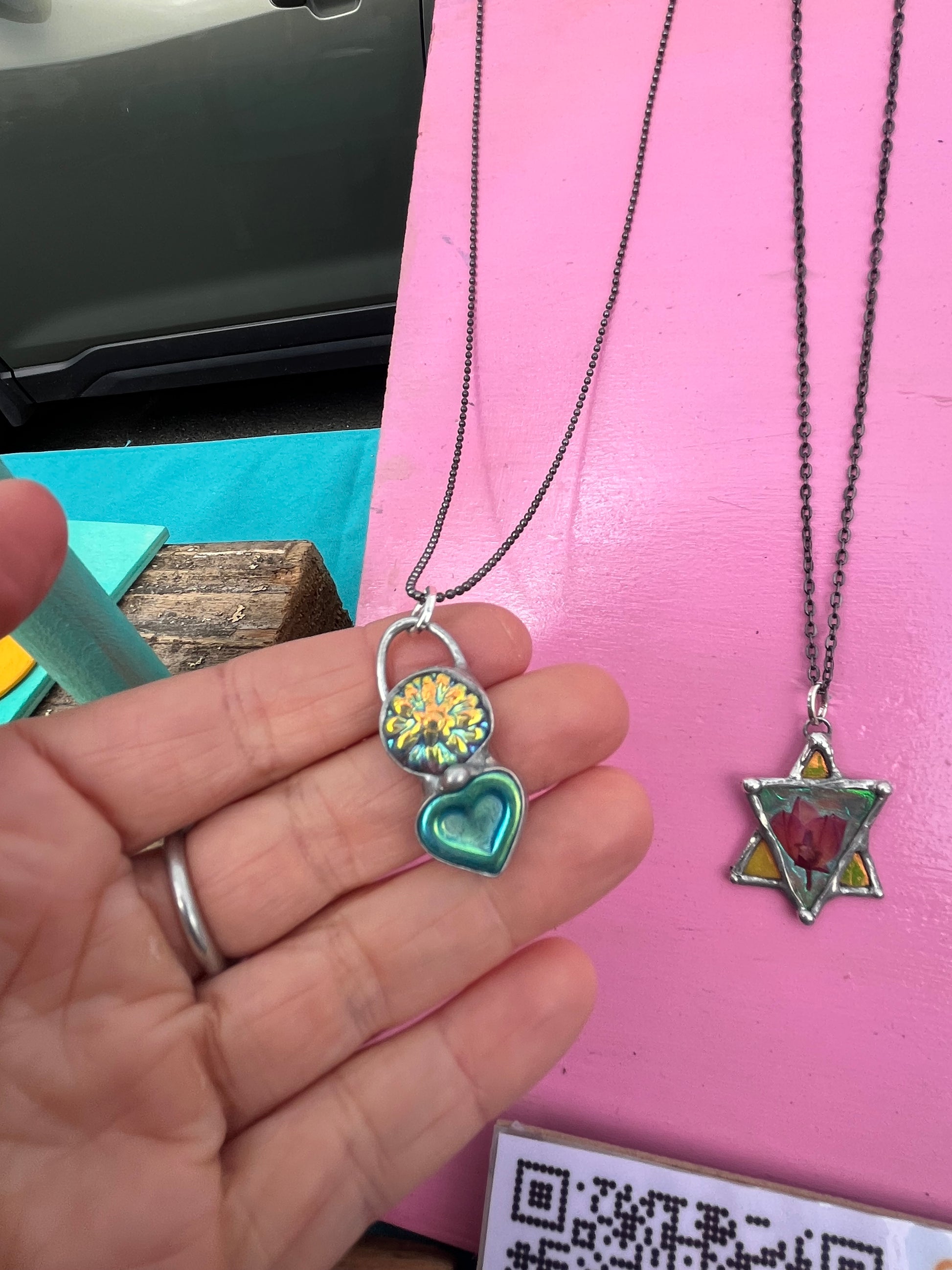 Elevate your style with this stunning Czech glass heart necklace, featuring a beautifully crafted Czech glass dahlia pendant. Each piece is meticulously handmade, combining vibrant colors and delicate glass artistry for a unique, eye-catching accessory. Perfect for adding a touch of elegance to any outfit or gifting to someone special. Lightweight and durable, this necklace captures the timeless charm of Czech glasswork, making it a treasured addition to your jewelry collection.