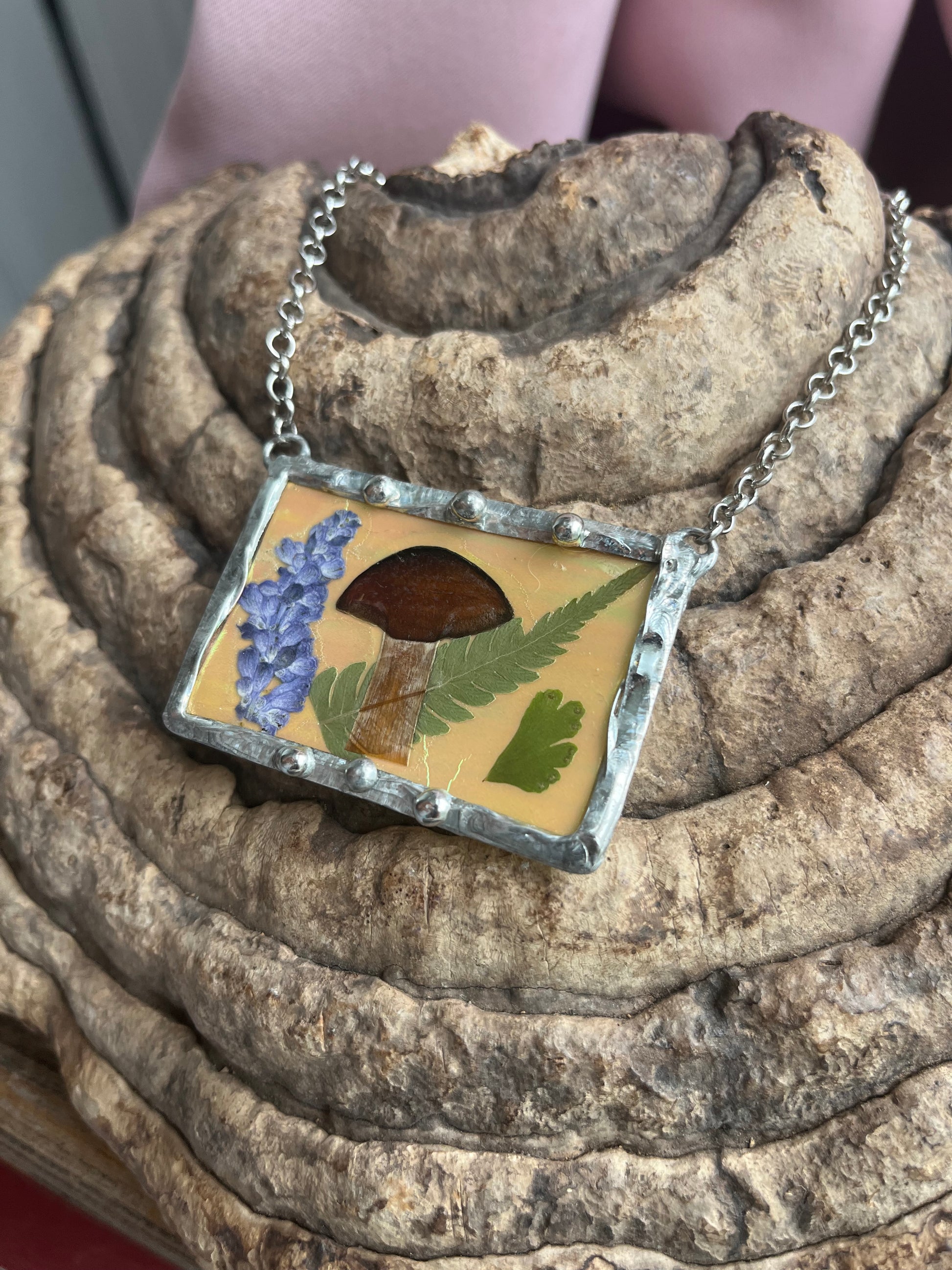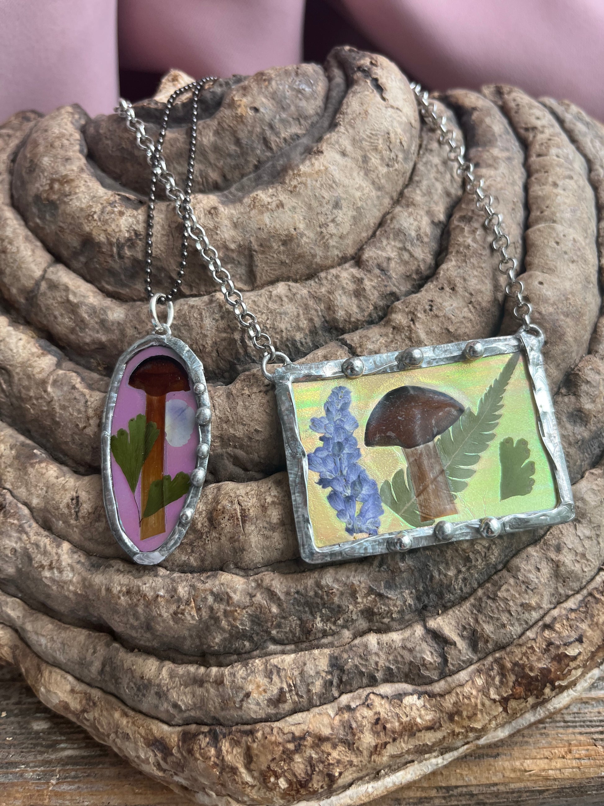 Mushroom Botanical Iridescent Fairy Land Necklace